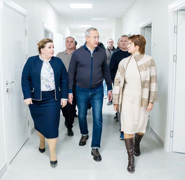 В сопровождении министра здравоохранения региона Анны Черновой и главного врача областной клинической больницы Елены Разумеевой глава региона осмотрел помещения Центра, побеседовал с пациентами и с медицинскими работниками.