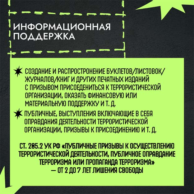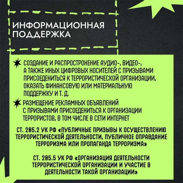 В каких форматах может проявляться поддержка террористических организаций