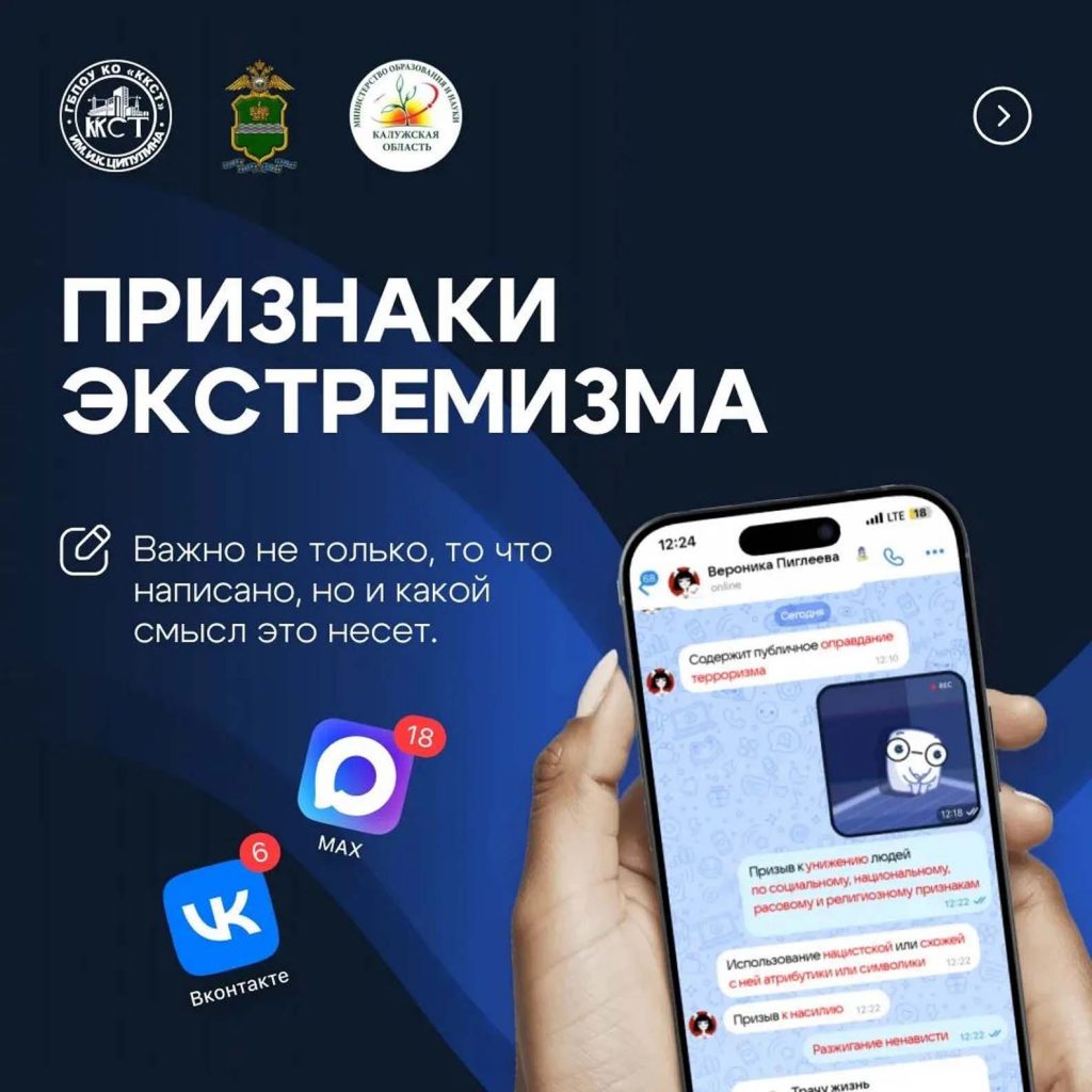 рассказываем в карточках, созданных медиацентром Калужского коммунально-строительного техникума им. И.К. Ципулина совместно с Центром по противодействию экстремизму УМВД России по Калужской области и министерством образования и науки региона.